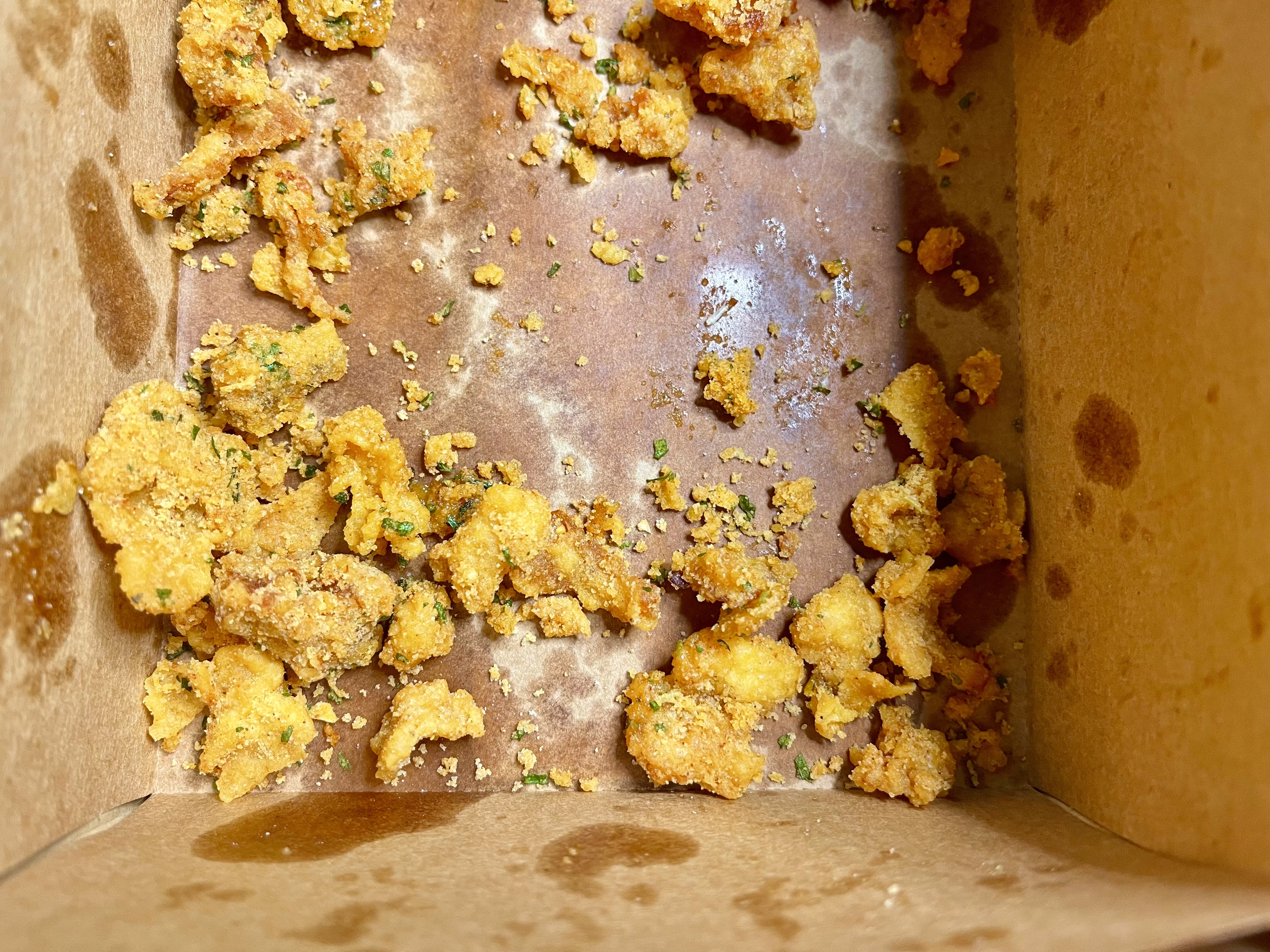 한쪽을 먹고 나니 아주 단단한 튀김옷이 남았다.