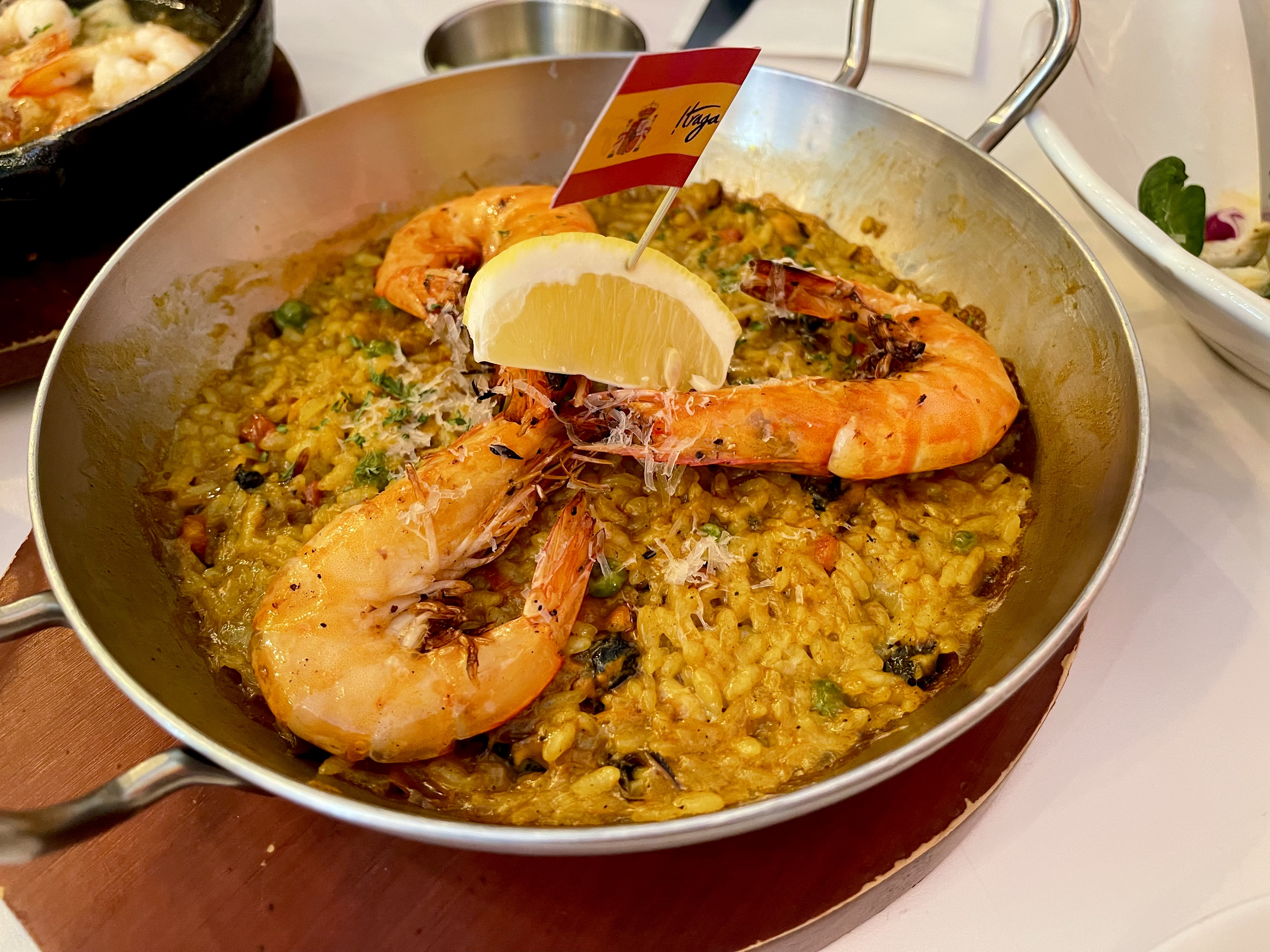- 가장 기대하던 빠에야. 간이 강하게 되어있는 편이고, 향긋한 요리였다. 접시에 약간 눌러서 나오는데, 따로 준비된 주걱으로 긁어먹을 수 있다. 레몬과 새우, 밥을 먹는 방법 등을 간단히 설명해줘서 좋았다.