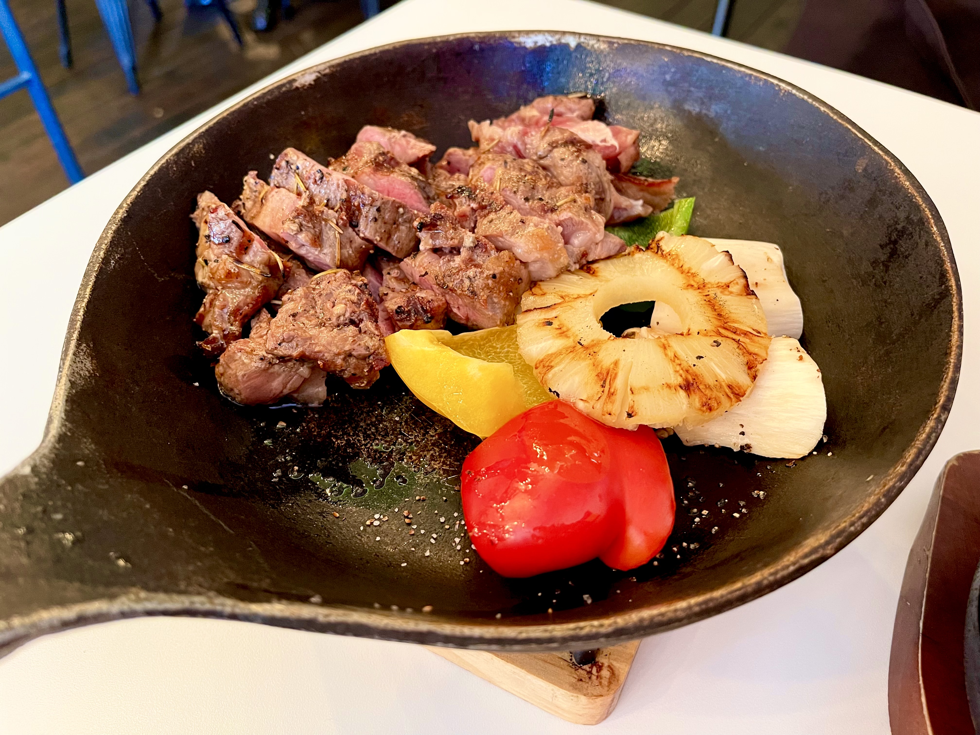 - 이베리코 고기를 먹어본 사람이라면 익숙한 맛인 이베리코 목살 스테이크. 미디엄 레어로 나오지만, 고체 연료로 그릇을 달구고 있기 때문에 필요하다면 더 익혀 먹을 수 있다.