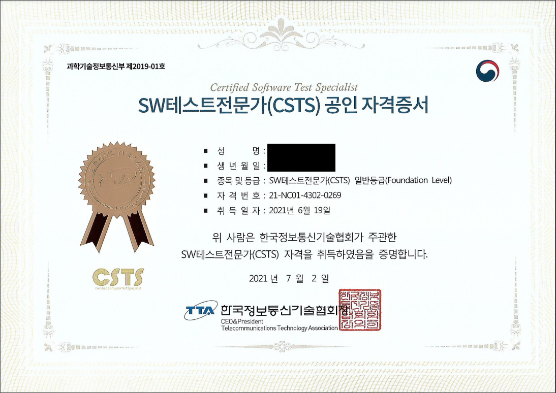 | 일반등급(Foundation Level) | 공인민간자격 | 과학기술정보통신부 제2019-01호 제2013-1321호 |